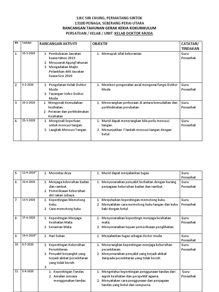 Rancangan Tahunan Kelab Doktor Muda 2020 Pdf